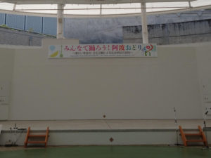 「みんなで踊ろう!阿波おどり」発表会の吊り看板の設営・撤去。